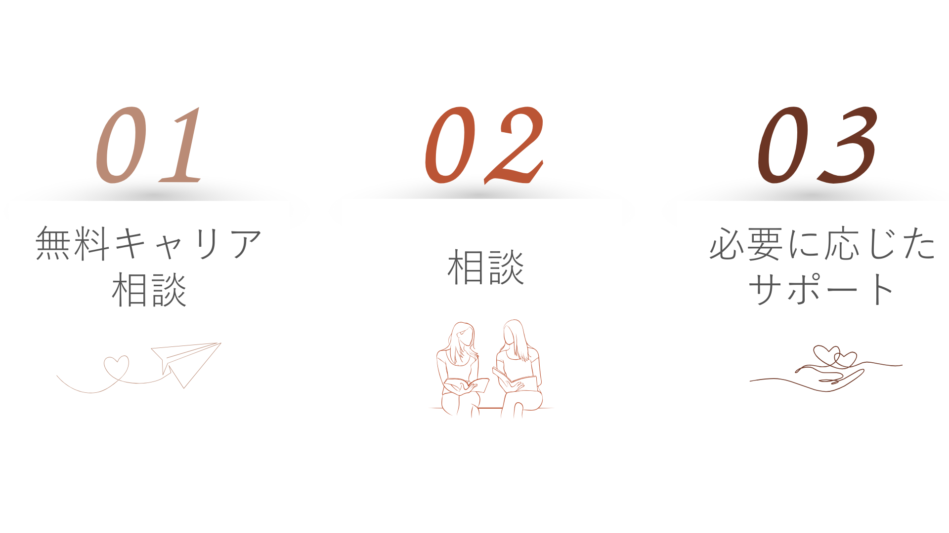 現職での悩みや将来の不安などを専任のパートナーがじっくり伺い、あなたに合ったサポートを行います。